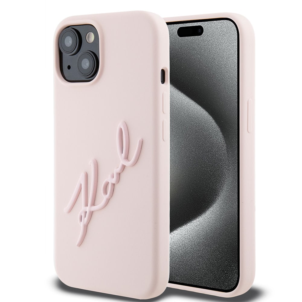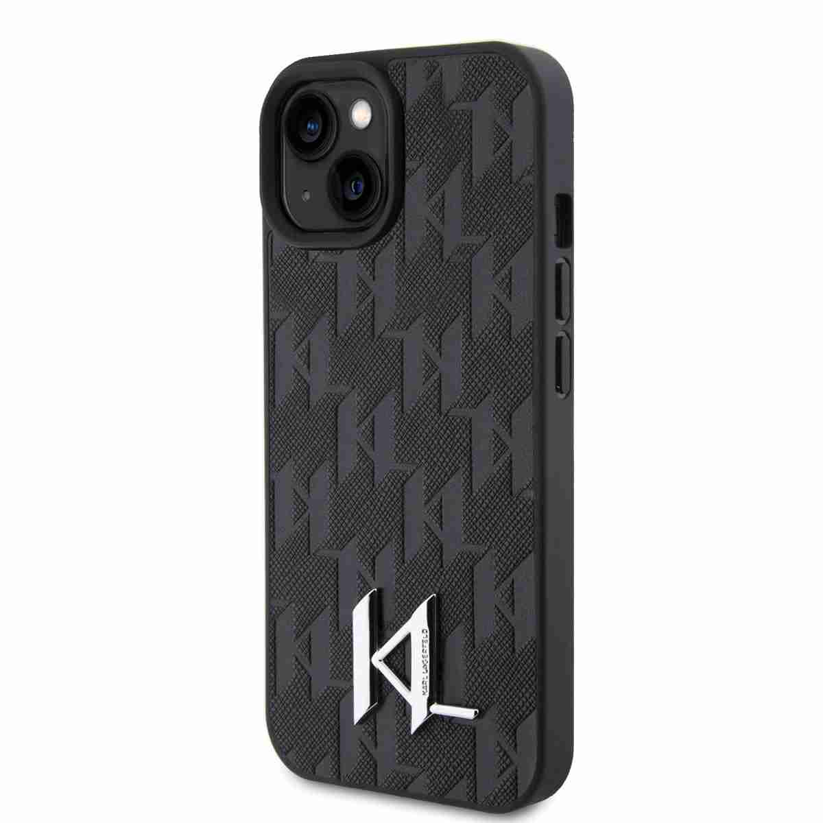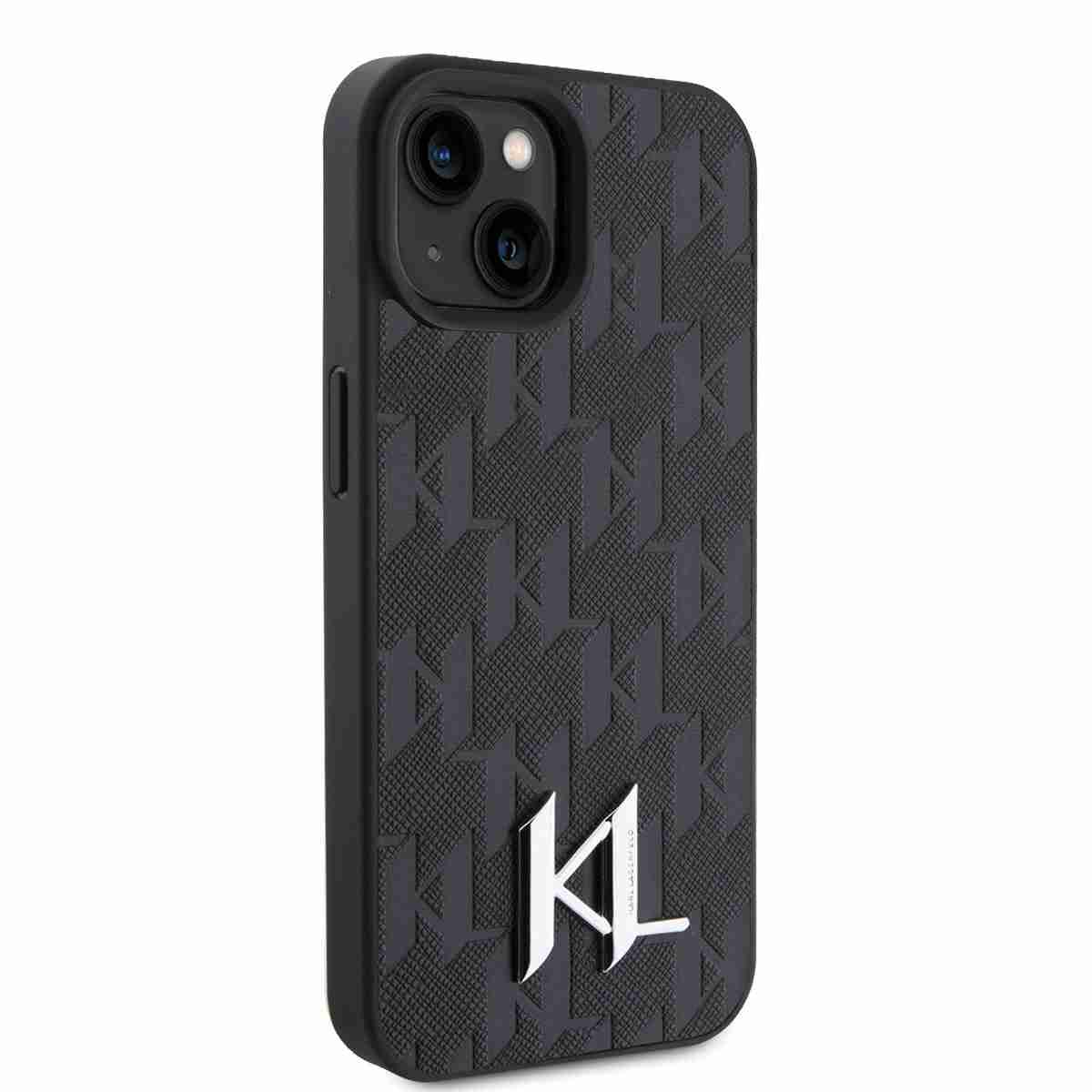 Karl Lagerfeld – Backcover iPhone 15 – Hot Stamp – KL Metal Logo – Monogram – Zwart