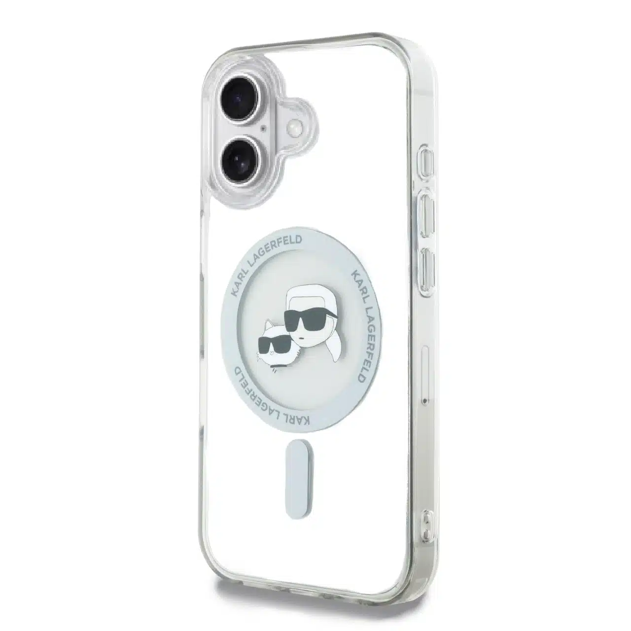 Karl Lagerfeld – Backcover iPhone 16 – Karl Head – Magsafe – metal – Transparant Wit