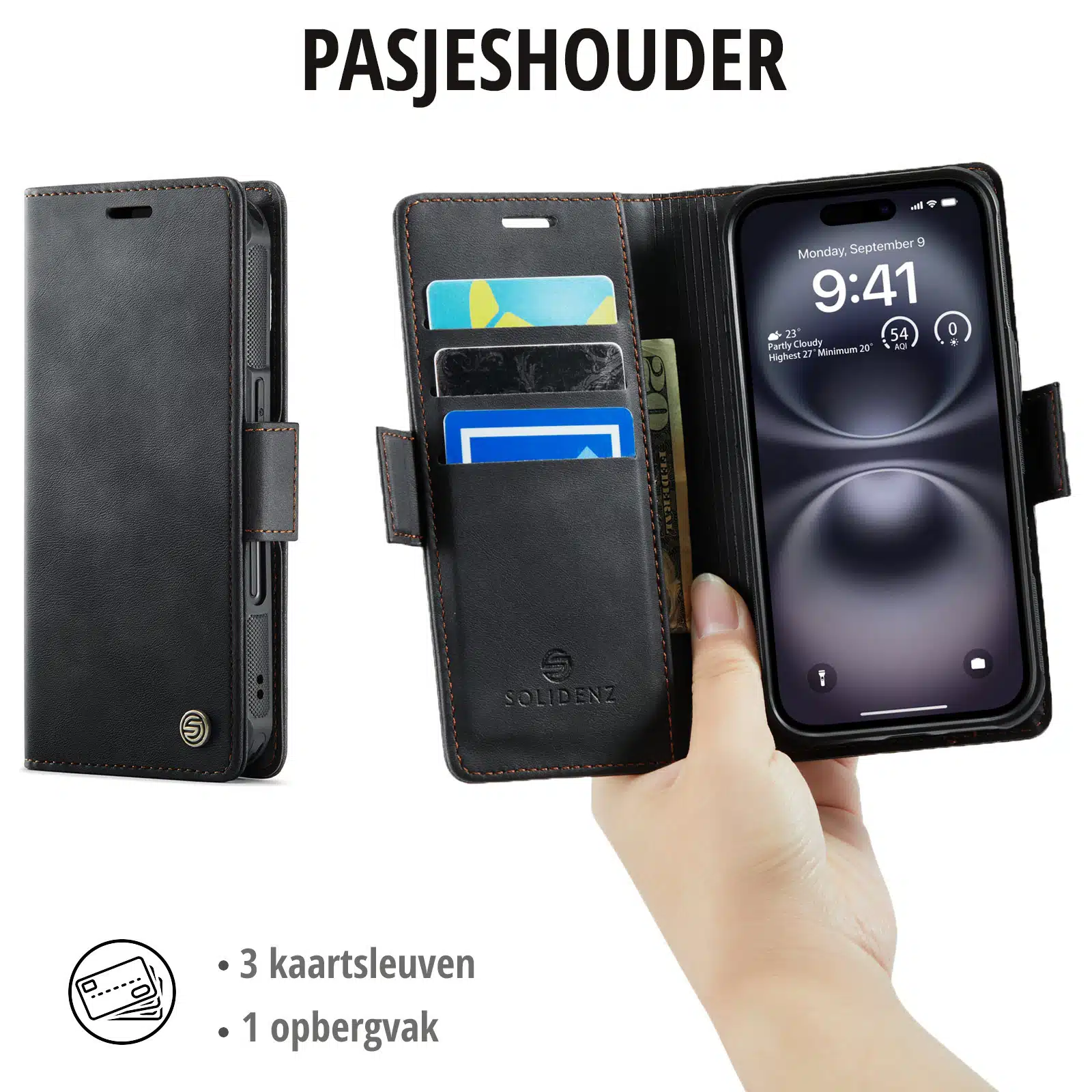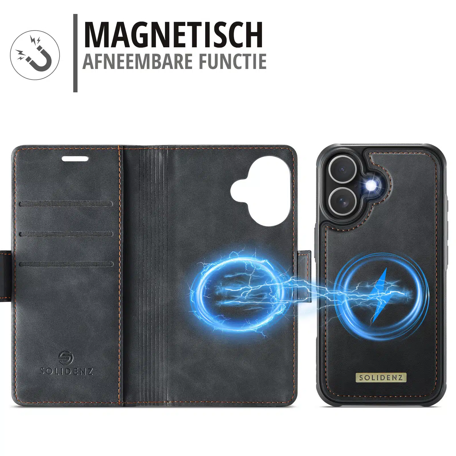 Solidenz 2-in-1 MagSafe Wallet Case voor iPhone 17 – Zwart
