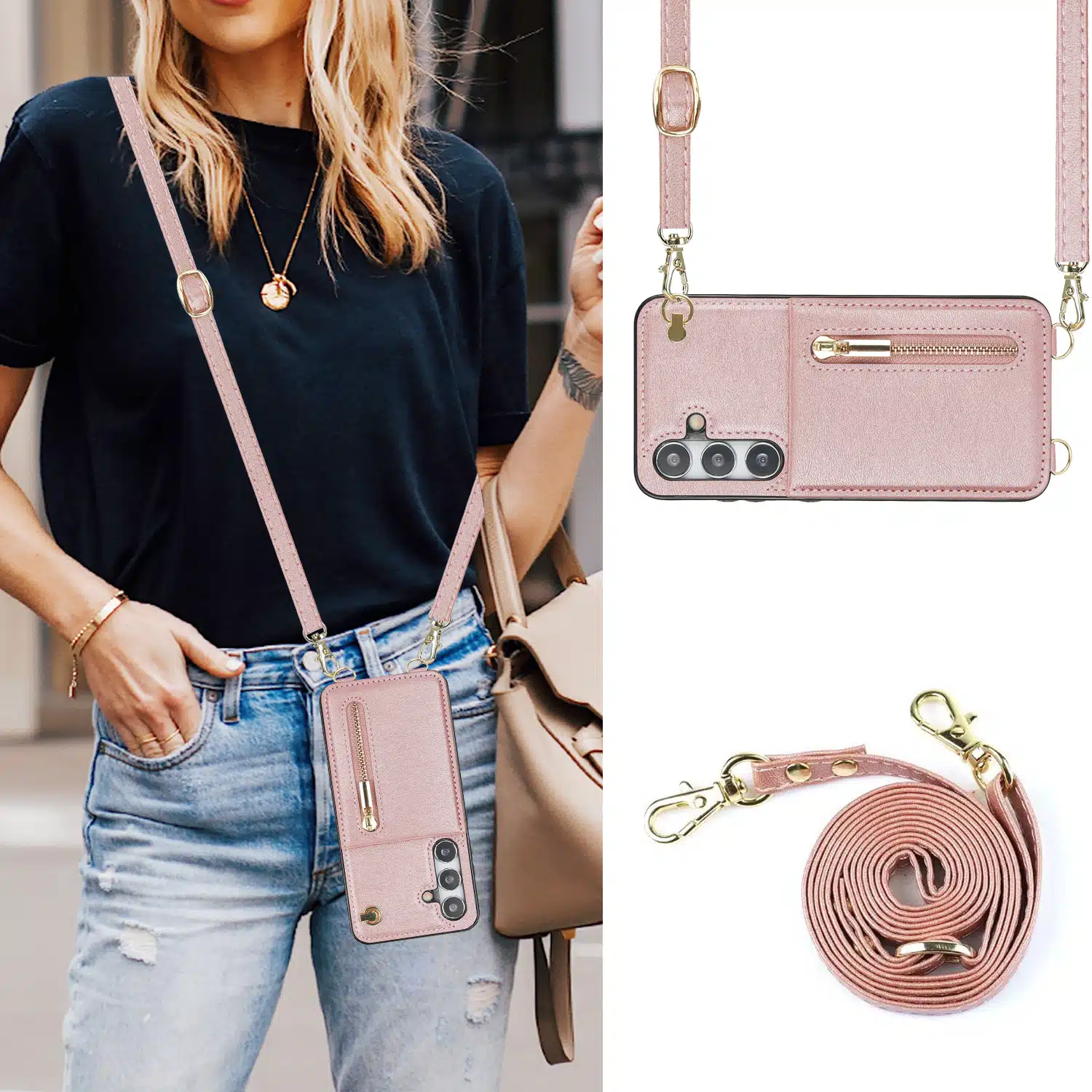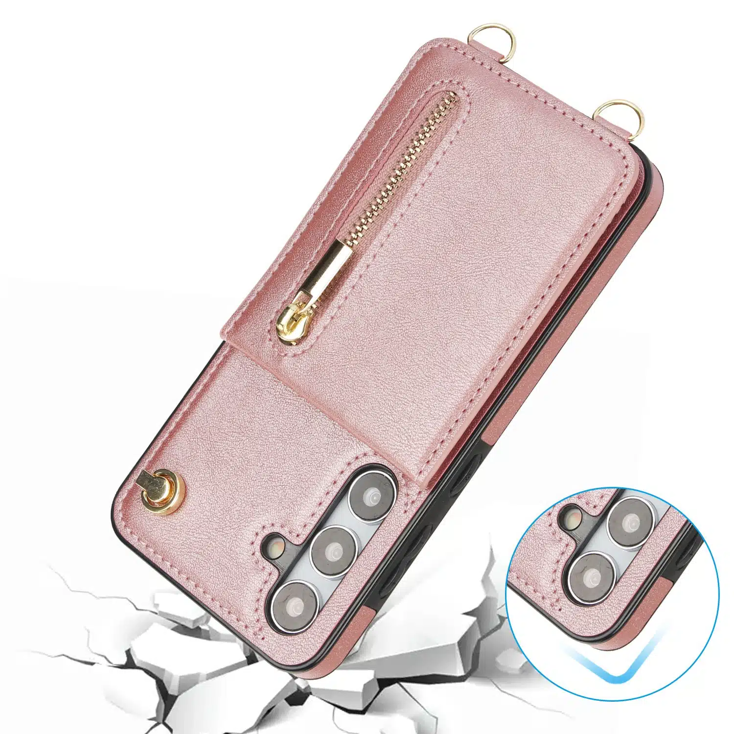 Solidenz – Backcover – Fashion Portemonnee met koord Geschikt voor – Samsung S24 Plus – S25 Plus- Roségoud