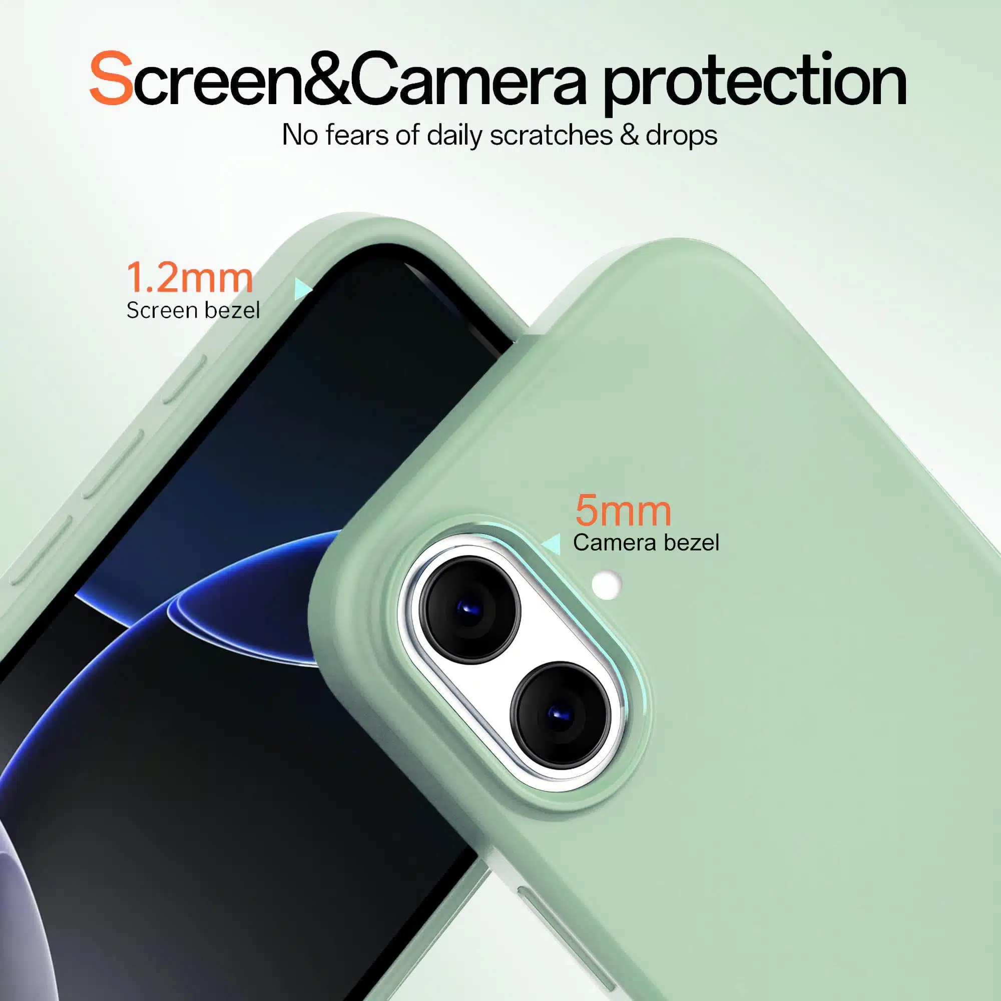 - Extra bescherming: 1,2mm verhoogde schermrand en 5mm camerabezel.