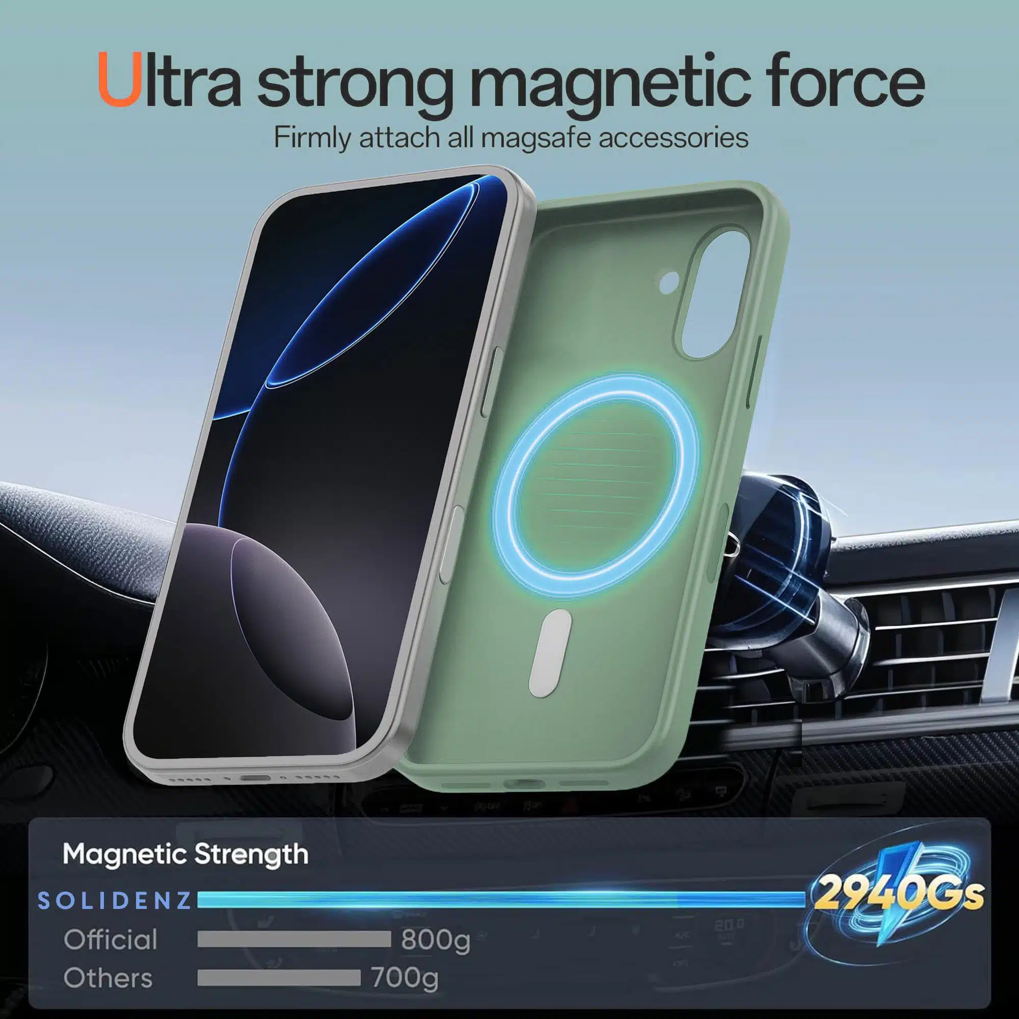 - Sterke magnetische grip voor MagSafe opladers, autohouders en wallets.