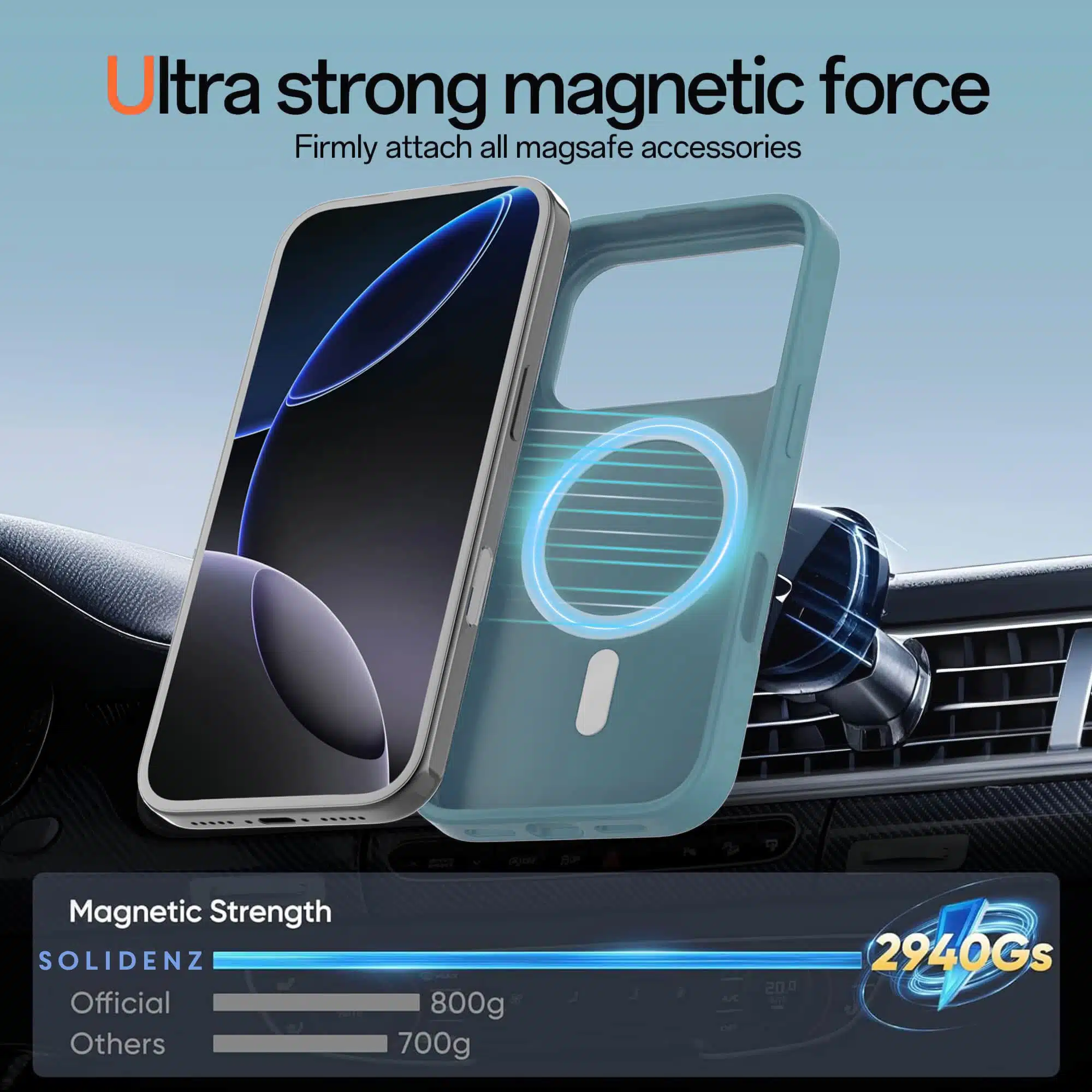 - Sterke magnetische grip voor MagSafe opladers, autohouders en wallets.