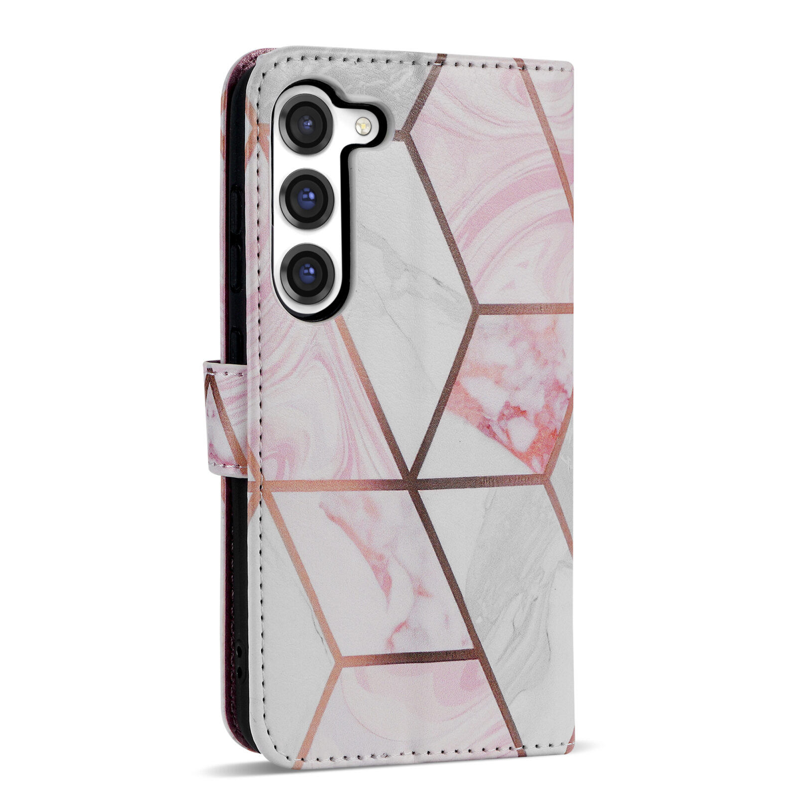 Solidenz – Bookcase – Geschikt voor – Samsung S24 Plus-S25 Plus –Marmer Roze