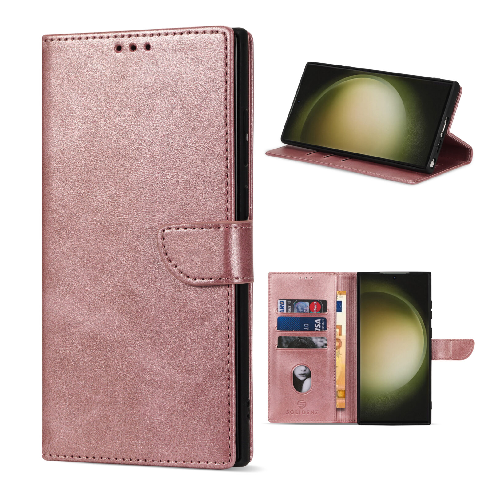 Solidenz – Bookcase – Geschikt voor – Samsung S24 Ultra – Roségoud