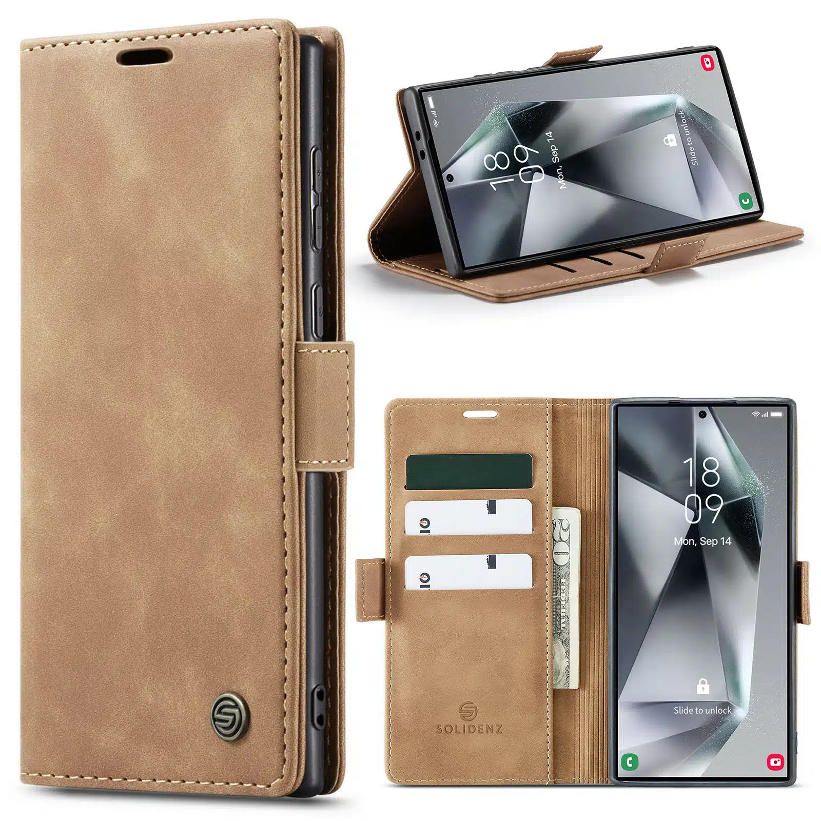 Solidenz – Bookcase – Geschikt voor Samsung S25 Ultra – Bruin