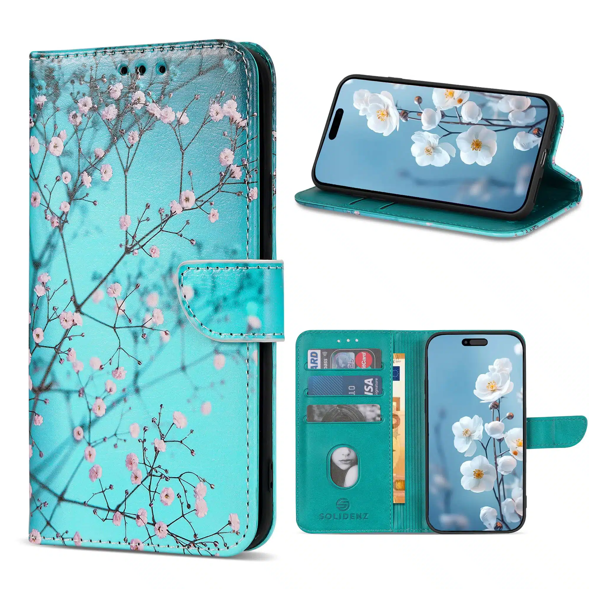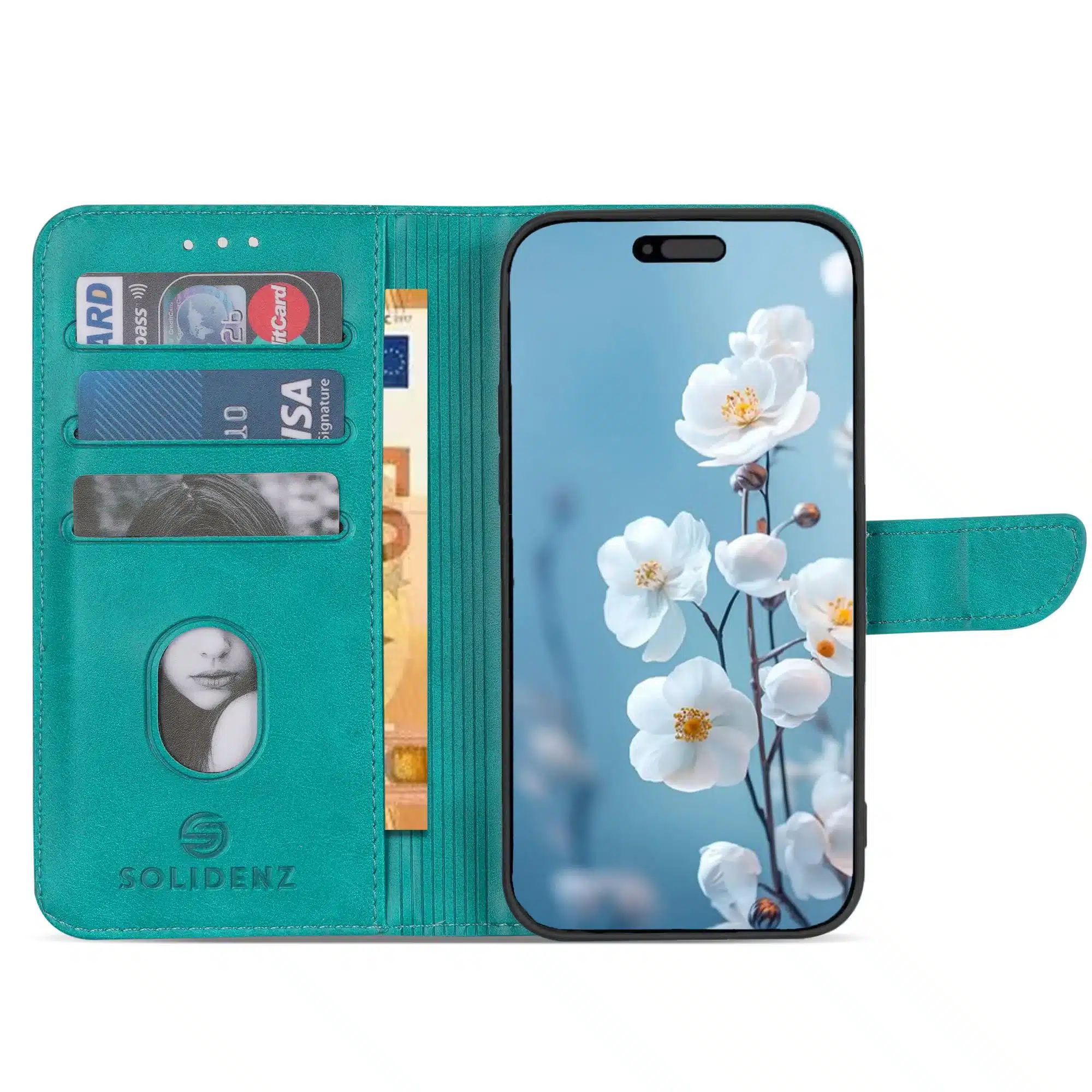 De cover waarin de smartphone in geplaatst wordt is gemaakt van schokbestendige siliconen wat ideaal is voor het verlenen van het best mogelijke protectie van de telefoon. De Solidenz telefoonhoes beschikt over 3 pasgleuven voor het veilig opbergen van de kaarten. Daarnaast kan achter de kaarten nog briefgeld gestopt worden in een aparte ruimte. De case sluit zich door middel van een magnetisch klepje waarmee de cover volledig wordt afgesloten. Let wel, bij het stoppen van teveel pasjes in de hoes werkt de magnetische sluiting minder goed. De telefoonhoes is verder eenvoudig op te vouwen tot een standaard voor het makkelijk neerzetten van de telefoon op een tafel. Bovendien zijn de uitsparingen handig ontworpen zodat na het opnemen van een telefoonoproep het mogelijk is om met een gesloten cover verder te bellen.