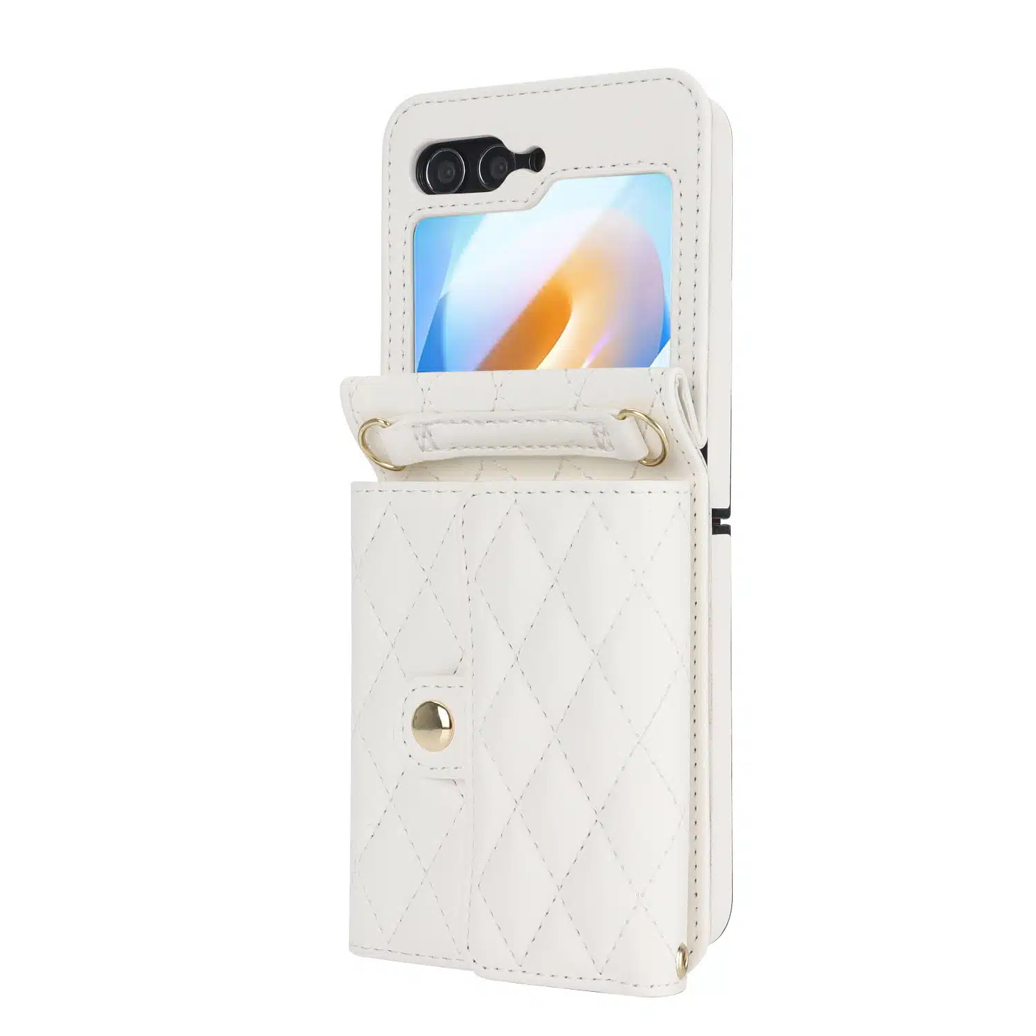 Solidenz Fashion Portemonnee hoesje met koord Samsung Galaxy Z Flip 6 – Wit