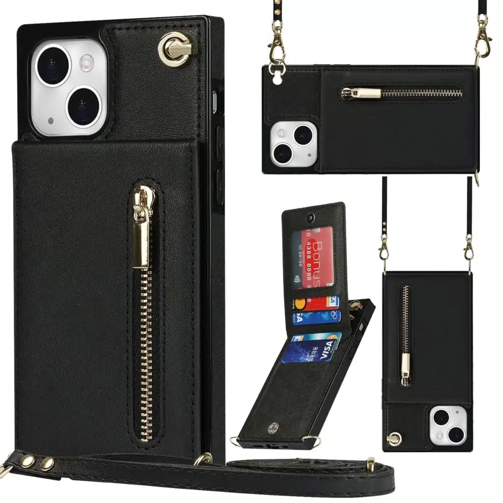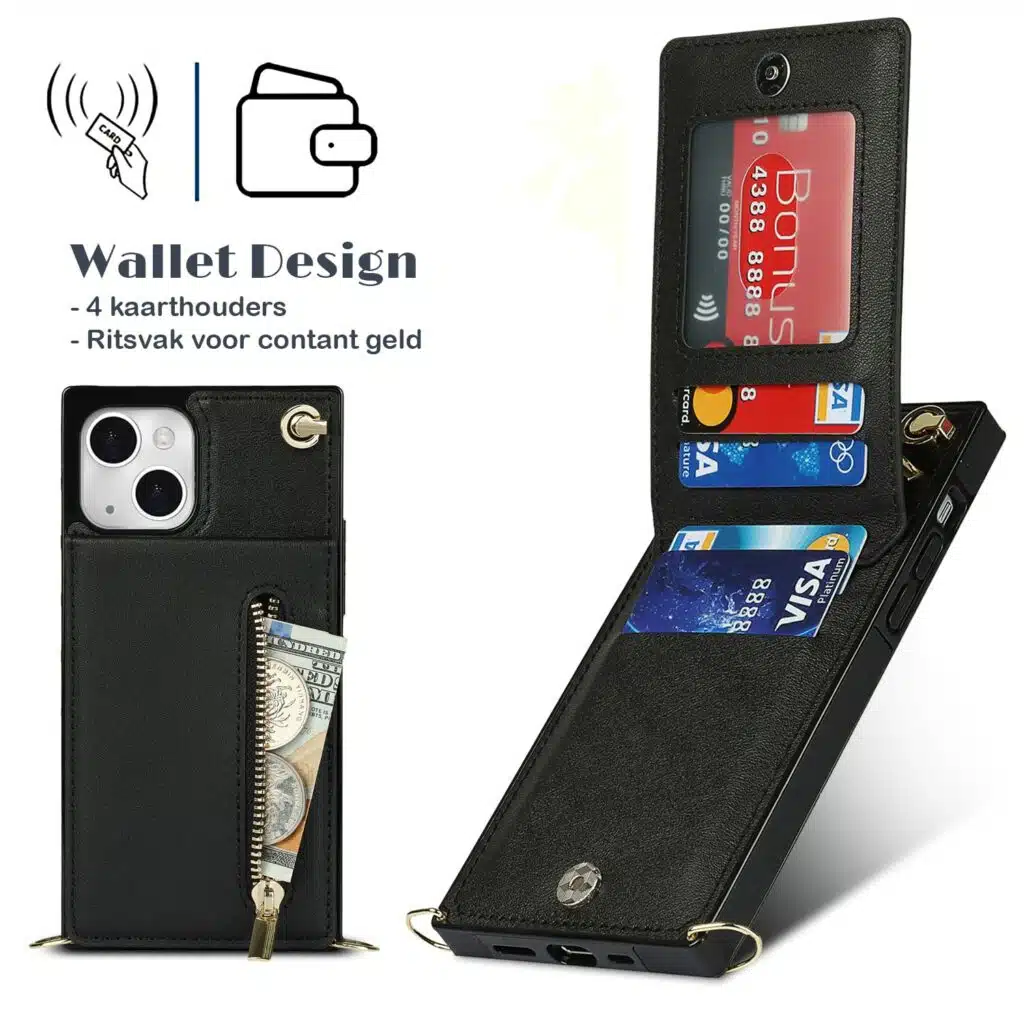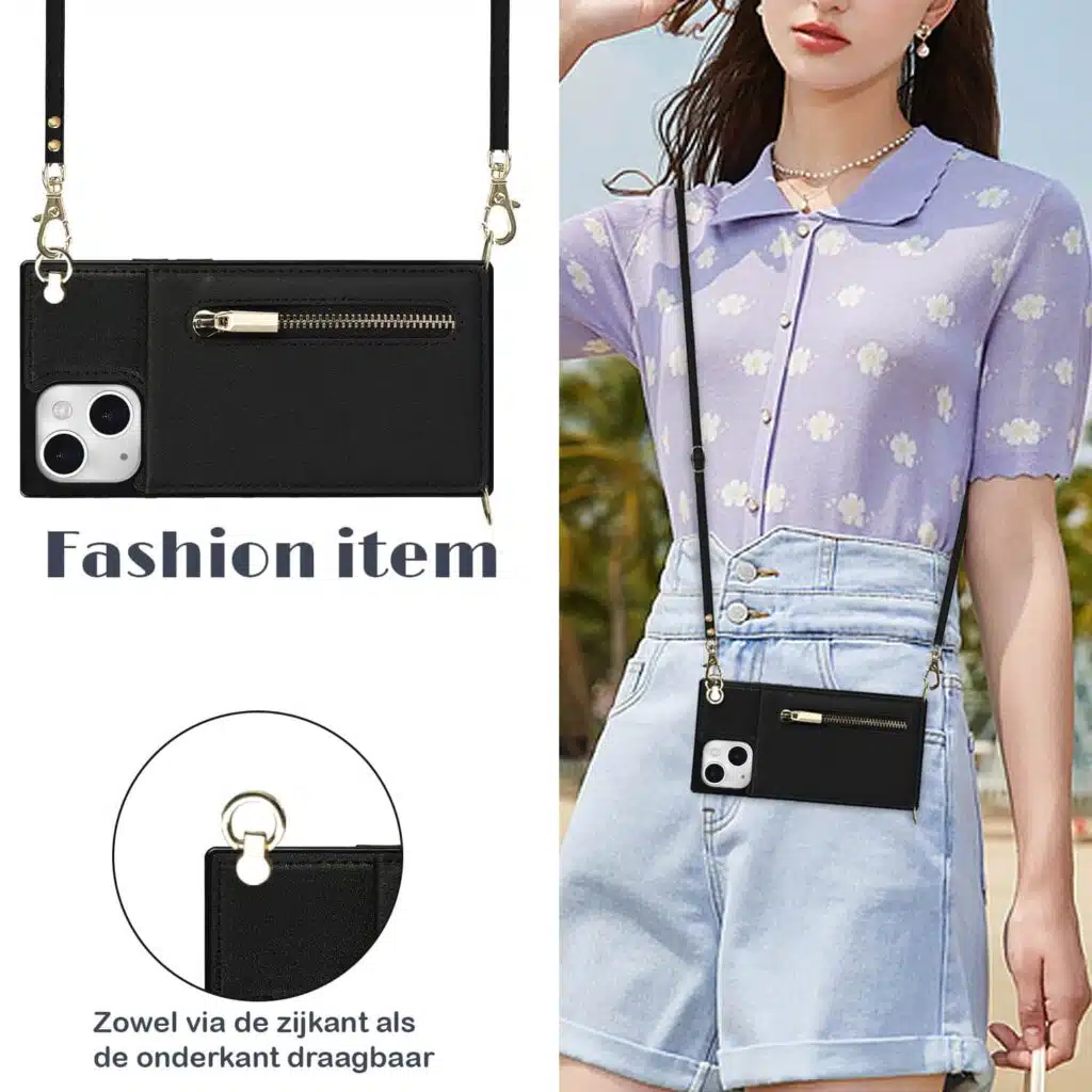 Solidenz Fashion Wallet hoesje met koord iPhone 13/14 – Zwart
