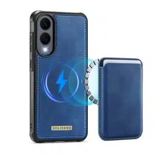 De Solidenz Wallet is de perfecte combinatie van functionaliteit, stijl en veiligheid. De telefoonhoes is gemaakt van premium materialen en dat ervaar je direct. De randen rondom het scherm en de camera zijn verhoogd voor optimale bescherming. De compacte kaarthouder is speciaal ontworpen voor het bewaren van drie kaarten. Dankzij de sterke magnetische bevestiging heb je een veilige en stabiele grip op je toestel en laat de pashouder niet zomaar los. Aan de achterkant van de pasjeshouder is een klein gaatje voor de vinger gemaakt om de pasjes zo eenvoudig uit de houder te kunnen drukken. De pashouder is geschikt voor MagSafe en kan dus ook zonder het hoesje gebruikt worden.