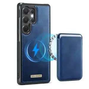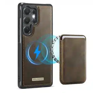 De Solidenz Wallet is de perfecte combinatie van functionaliteit, stijl en veiligheid. De telefoonhoes is gemaakt van premium materialen en dat ervaar je direct. De randen rondom het scherm en de camera zijn verhoogd voor optimale bescherming. De compacte kaarthouder is speciaal ontworpen voor het bewaren van drie kaarten. Dankzij de sterke magnetische bevestiging heb je een veilige en stabiele grip op je toestel en laat de pashouder niet zomaar los. Aan de achterkant van de pasjeshouder is een klein gaatje voor de vinger gemaakt om de pasjes zo eenvoudig uit de houder te kunnen drukken. De pashouder is geschikt voor MagSafe en kan dus ook zonder het hoesje gebruikt worden.