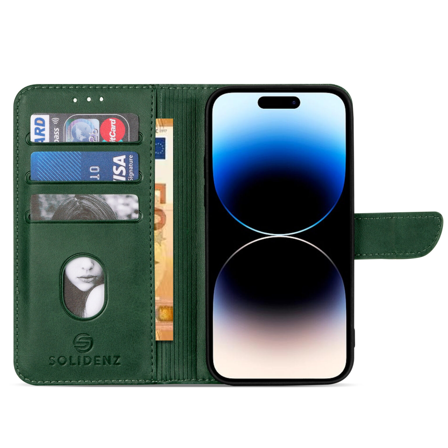 De Solidenz hoes is gemaakt van PU-leer wat alleen maar mooier wordt naarmate het wordt gebruikt. Dit effect karakteriseert de kwaliteit van de premium materialen die gebruikt zijn ter vervaardiging van de smartphone cover. Het design van de case is zo compact mogelijk ontworpen waardoor het ideaal is voor dagelijks gebruik. De telefoon met de hoes eromheen is zeer eenvoudig in en uit de broekzak te halen. De cover waarin de smartphone in geplaatst wordt is gemaakt van schokbestendige siliconen wat ideaal is voor het verlenen van het best mogelijke protectie van de telefoon. De camera opening aan de achterkant van de hoes is diep ontworpen zodat de randen om de camera heen ver over de camera heen vallen. Zo voorkom je een directe klap van de camera op de grond. De Solidenz Urban Book beschikt over 2 pasgleuven voor het veilig opbergen van de kaarten. De case heeft een klein magnetisch klepje waarmee de cover volledig wordt afgesloten. De telefoonhoes is verder eenvoudig op te vouwen tot een standaard voor het makkelijk neerzetten van de telefoon op een tafel. Bovendien zijn de uitsparingen handig ontworpen zodat na het opnemen van een telefoonoproep het mogelijk is om met een gesloten cover verder te bellen.