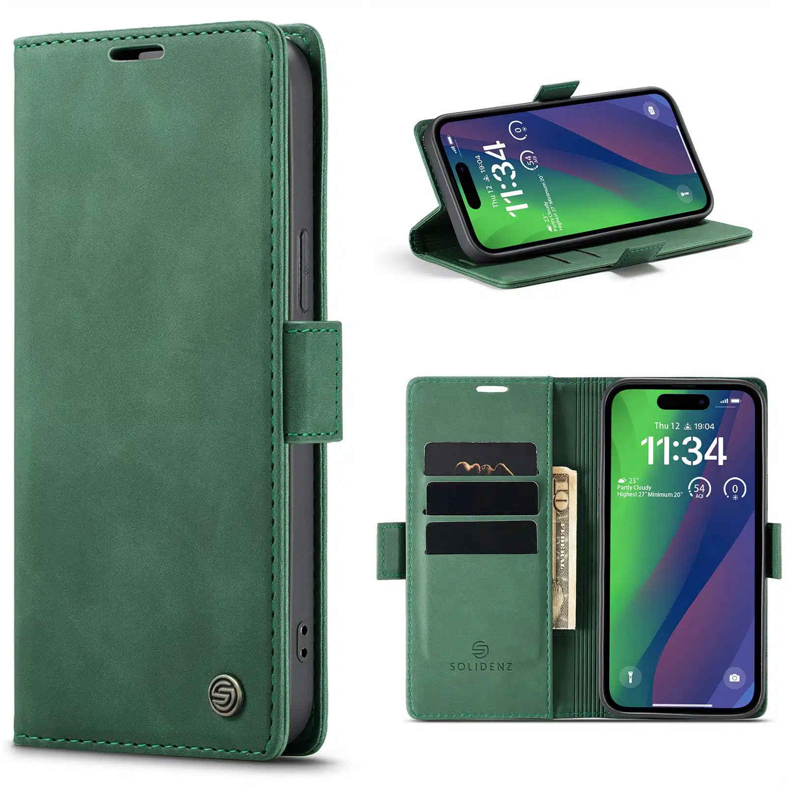 De Solidenz hoes is gemaakt van PU-leer wat alleen maar mooier wordt naarmate het wordt gebruikt. Dit effect karakteriseert de kwaliteit van de premium materialen die gebruikt zijn ter vervaardiging van de smartphone cover. Het design van de case is zo compact mogelijk ontworpen waardoor het ideaal is voor dagelijks gebruik. De telefoon met de hoes eromheen is zeer eenvoudig in en uit de broekzak te halen. De cover waarin de smartphone in geplaatst wordt is gemaakt van schokbestendige siliconen wat ideaal is voor het verlenen van het best mogelijke protectie van de telefoon. De camera opening aan de achterkant van de hoes is diep ontworpen zodat de randen om de camera heen ver over de camera heen vallen. Zo voorkom je een directe klap van de camera op de grond. De Solidenz Urban Book beschikt over 2 pasgleuven voor het veilig opbergen van de kaarten. De case heeft een klein magnetisch klepje waarmee de cover volledig wordt afgesloten. De telefoonhoes is verder eenvoudig op te vouwen tot een standaard voor het makkelijk neerzetten van de telefoon op een tafel. Bovendien zijn de uitsparingen handig ontworpen zodat na het opnemen van een telefoonoproep het mogelijk is om met een gesloten cover verder te bellen.