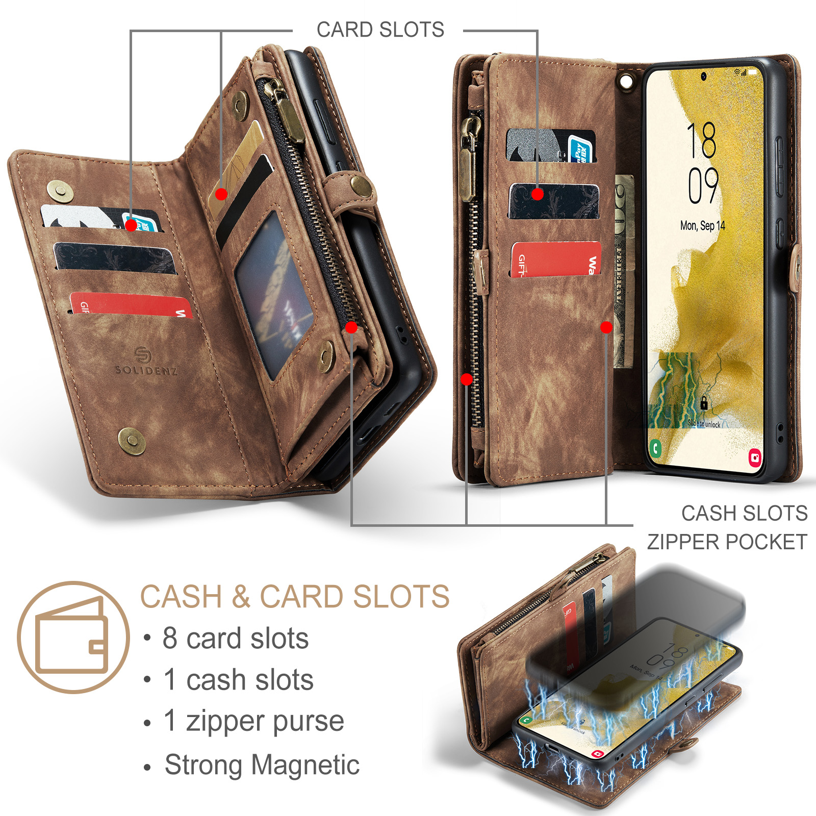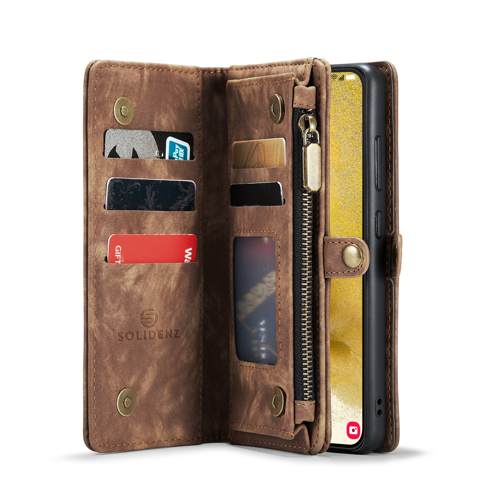 Solidenz – Urban Bookcase Wallet 2in1 – Geschikt voor – Samsung S24 FE – Bruin