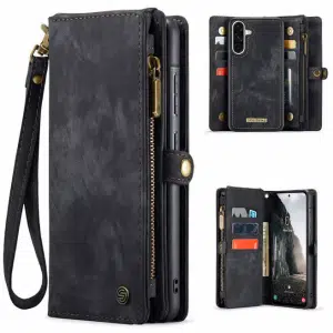 Deze telefoonhoes bestaat uit een wallet gedeelte en een telefoonhoes gedeelte. In de telefoonhoes is een uitsparing gemaakt voor de camera, in de wallet zit geen uitsparing voor de camera. Gelukkig is de telefoonhoes magnetisch uithaalbaar waardoor het eenvoudig is om de hoes magnetisch uit de wallet te halen om gemakkelijk foto’s en video’s te maken zonder de gevulde wallet met pasjes in de hand te hoeven houden. Hierdoor heb je dus een stabielere grip voor het maken van prachtige foto’s en video’s.