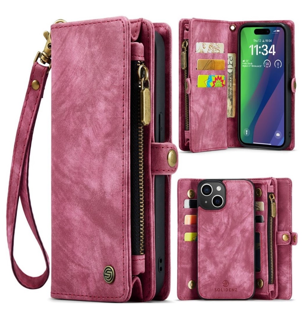 Solidenz Urban – Bookcase iPhone 15 – Portemonnee Wallet – 2 in 1- Rood