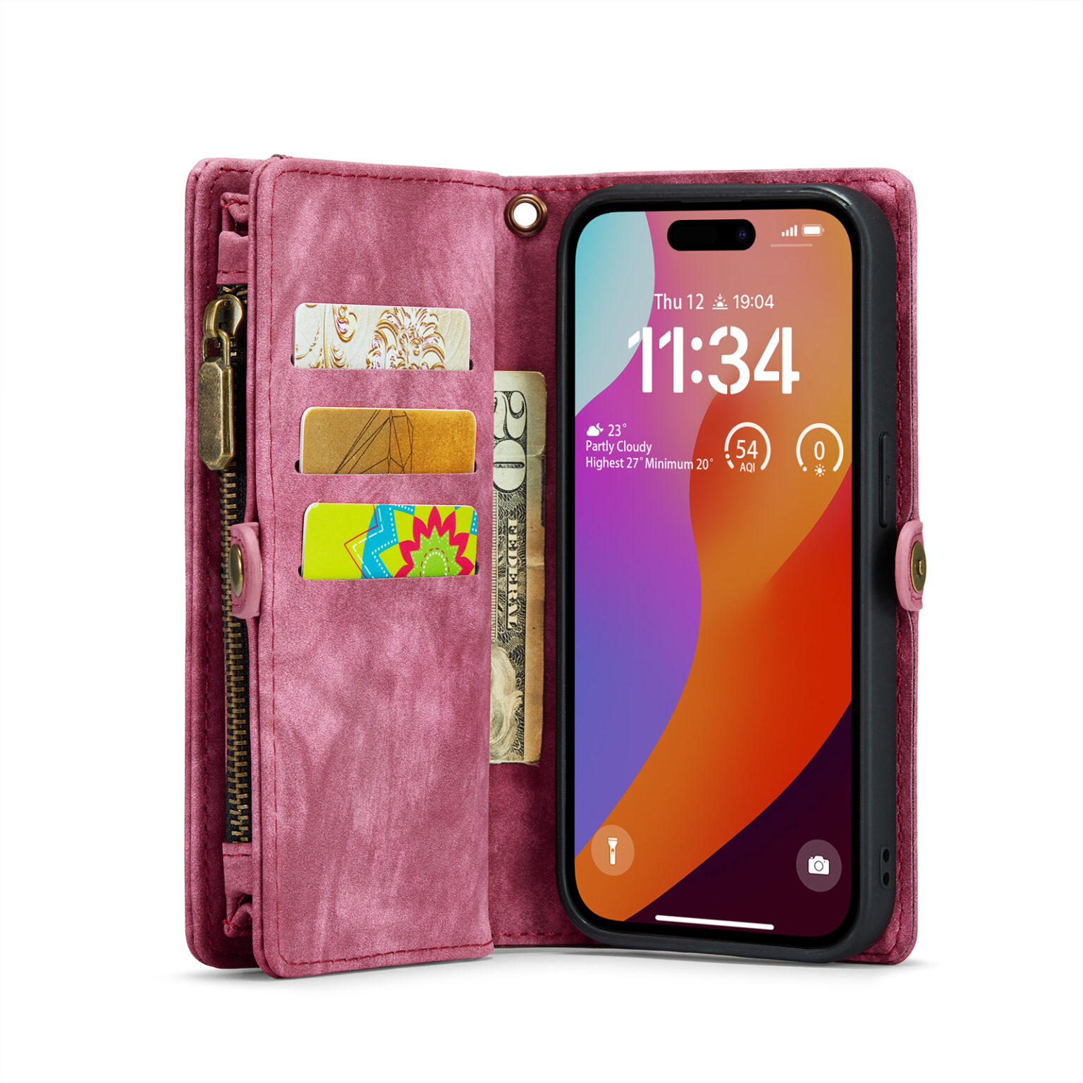Deze telefoonhoes bestaat uit een wallet gedeelte en een telefoonhoes gedeelte. In de telefoonhoes is een uitsparing gemaakt voor de camera, in de wallet zit geen uitsparing voor de camera. Gelukkig is de telefoonhoes magnetisch uithaalbaar waardoor het eenvoudig is om de hoes magnetisch uit de wallet te halen om gemakkelijk foto’s en video’s te maken zonder de gevulde wallet met pasjes in de hand te hoeven houden. Hierdoor heb je dus een stabielere grip voor het maken van prachtige foto’s en video’s.