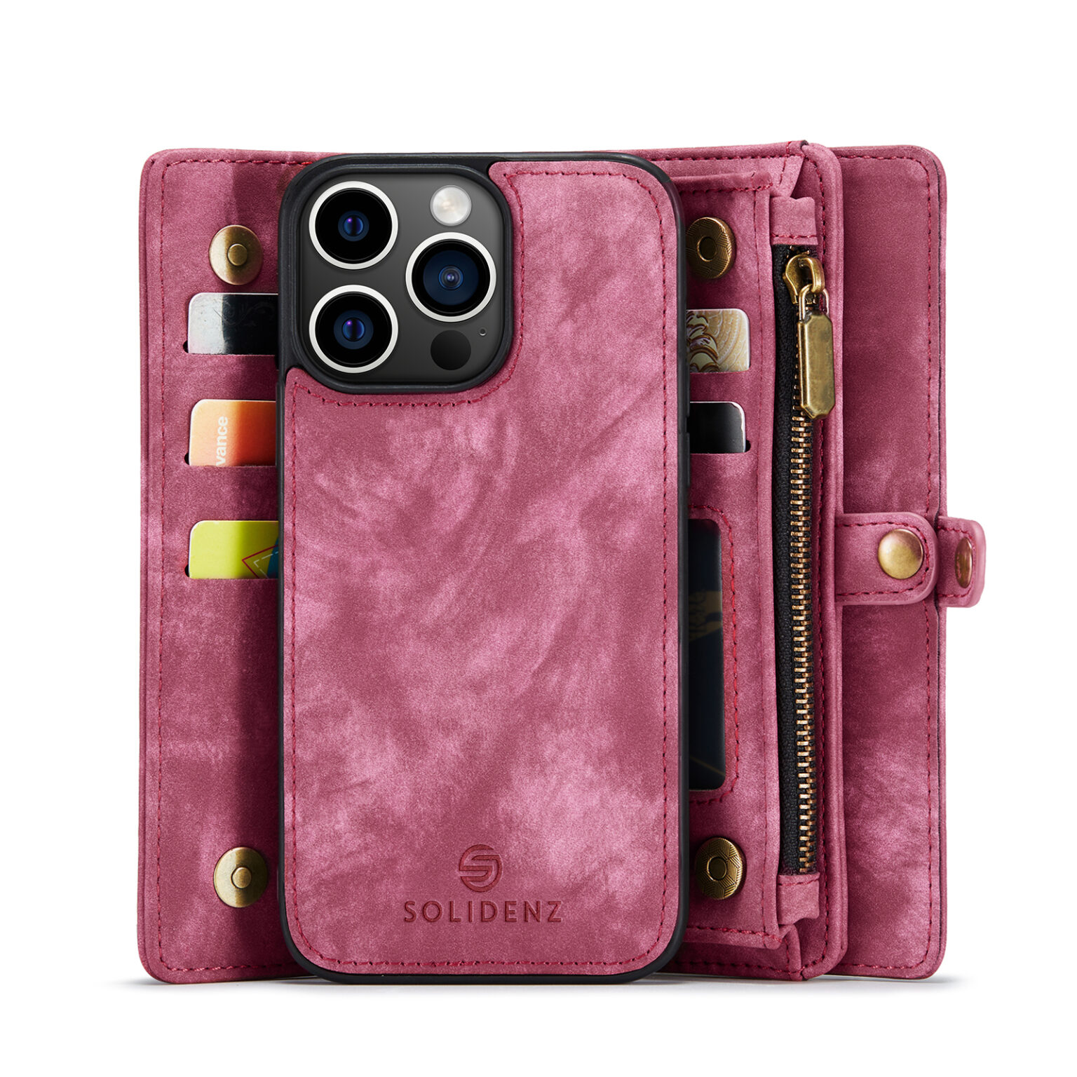 Solidenz Urban – Bookcase iPhone 15 Pro Max – Wallet – 2in1 – Rood
