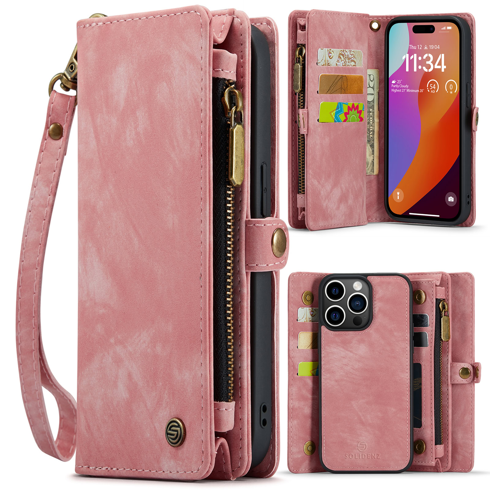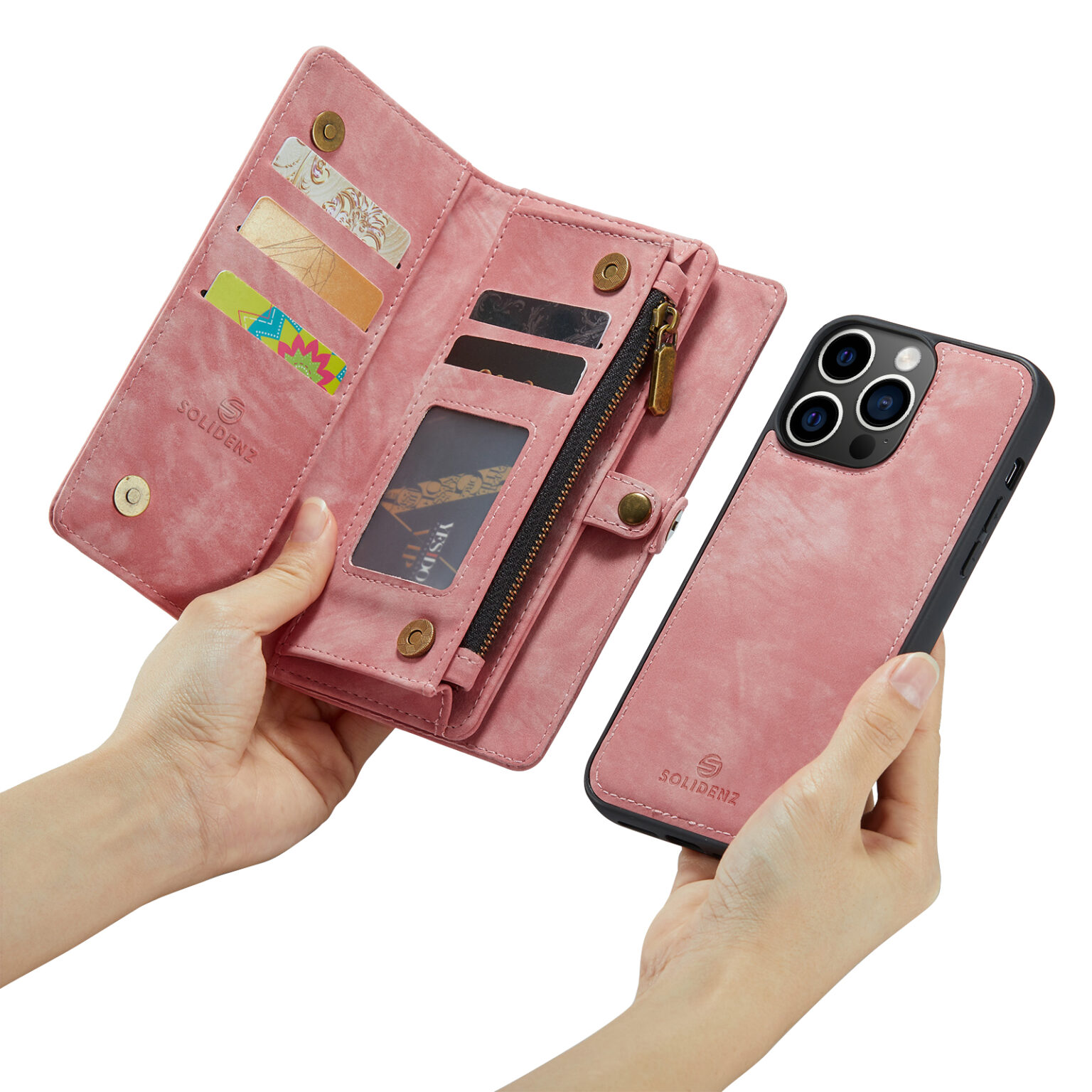 Solidenz Urban – Bookcase iPhone 15 Pro Max – Wallet – 2in1 – Roze