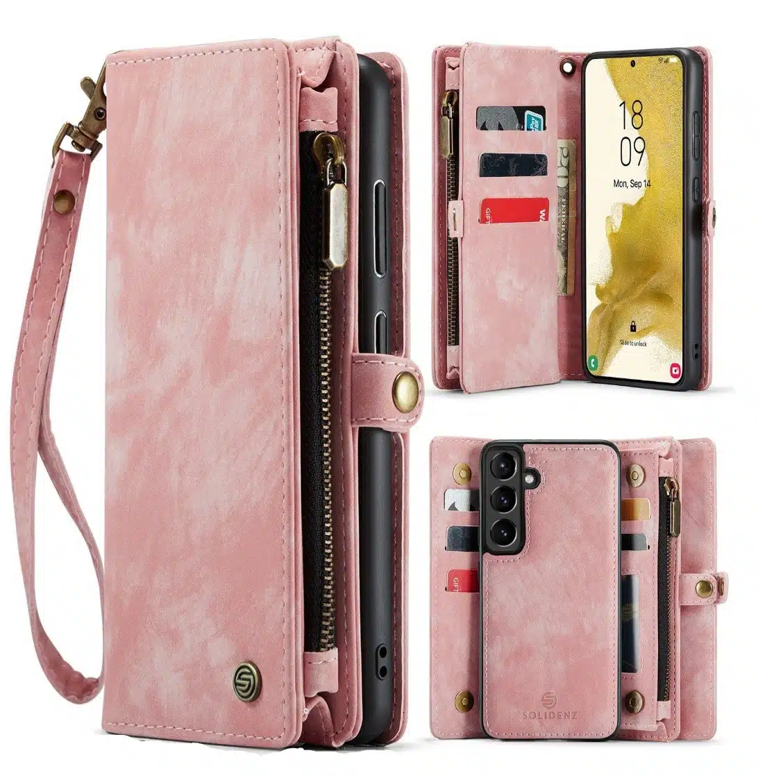 De Solidenz Urban Wallet beschikt over 8 pasgleuven voor het veilig opbergen van de kaarten. Bovendien beschik je over een aparte met rits afsluitbare ruimte voor brief- en muntgeld. De case heeft een kleine drukknop wat magnetisch is voor het volledig afsluiten van de telefooncover. De telefoonhoes is verder eenvoudig op te vouwen tot een standaard voor het makkelijk neerzetten van de telefoon op een tafel. Het hoesje is een 2in1 hoes, wat betekent dat de binnenkant magnetisch uit de hoes in en uithaalbaar is. Zo kun je de binnenste siliconen hoes uit de portemonnee halen voor bijvoorbeeld een autohouder of wanneer je een compactere hoes nodig hebt.