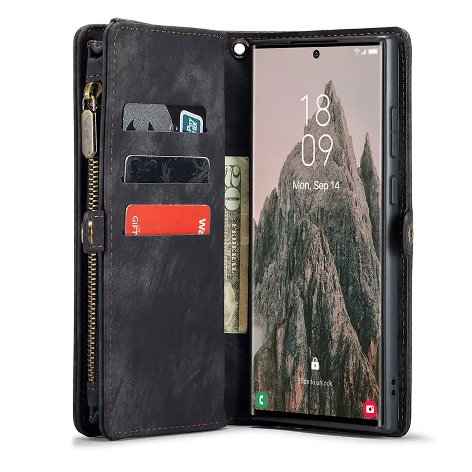 - Aparte opbergruimte voor brief- en muntgeld