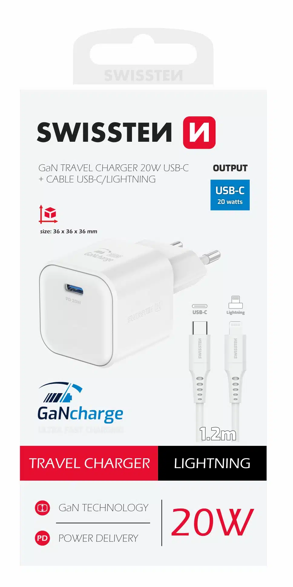 Swissten – 20W USB-C Travel Charger With Lightning To USB-C Cable – 1.2m – Wit