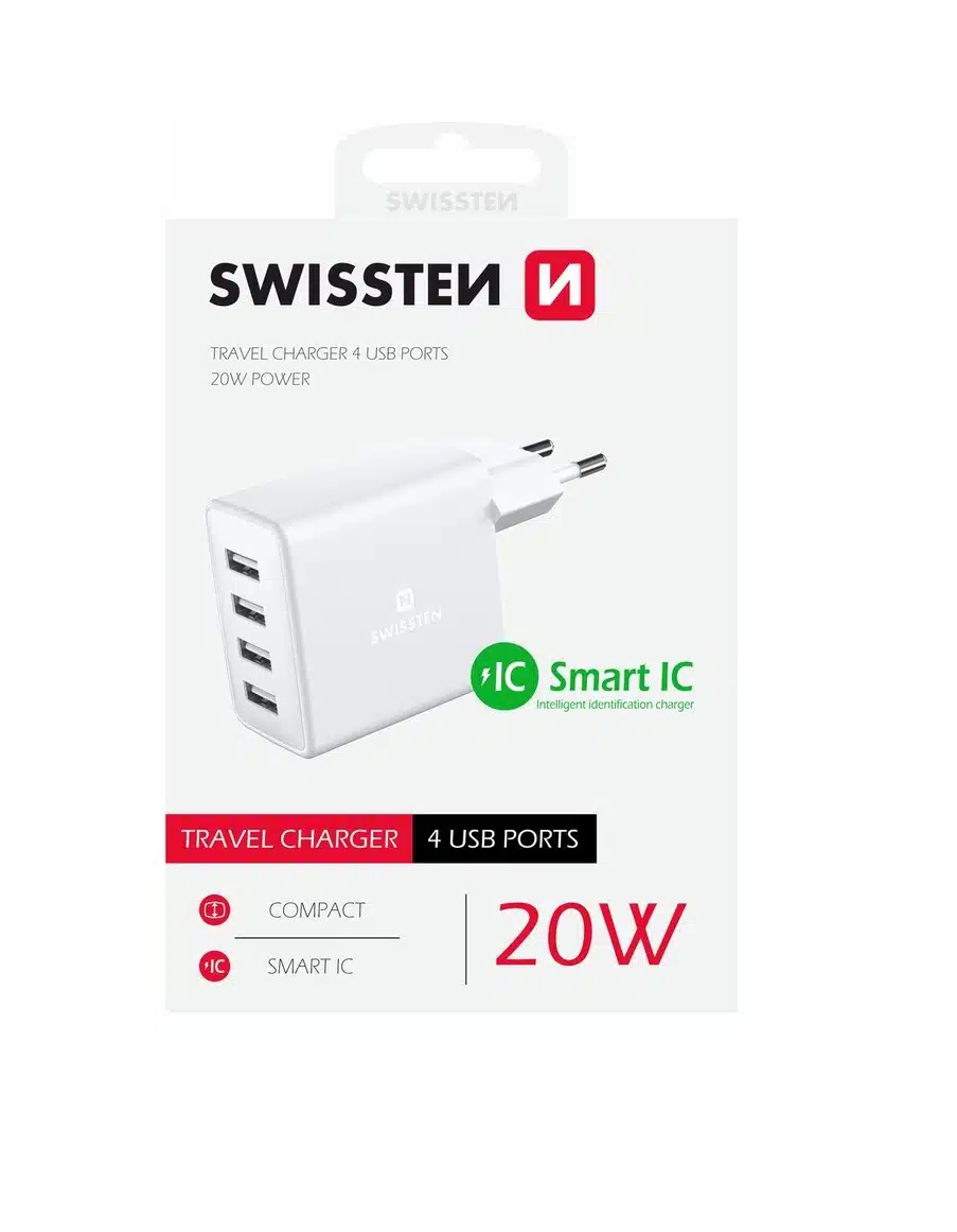 Swissten – 4A – 4 Port Travel Charger (20W) – Oplader – Wit