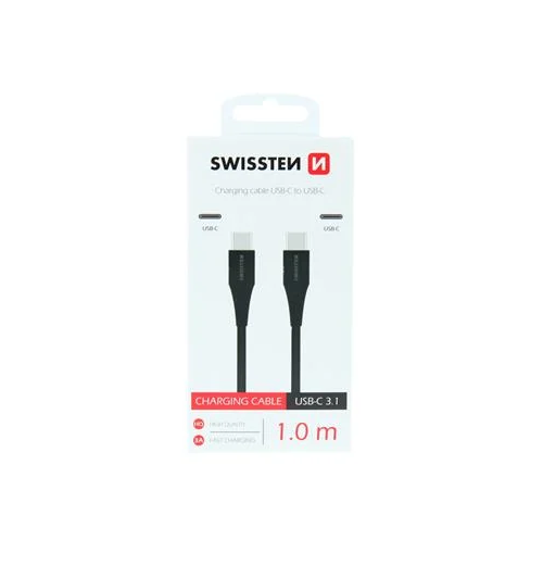 Swissten Textile Type – C To C -Cable – 1.0 m – Fast Charging – Zwart