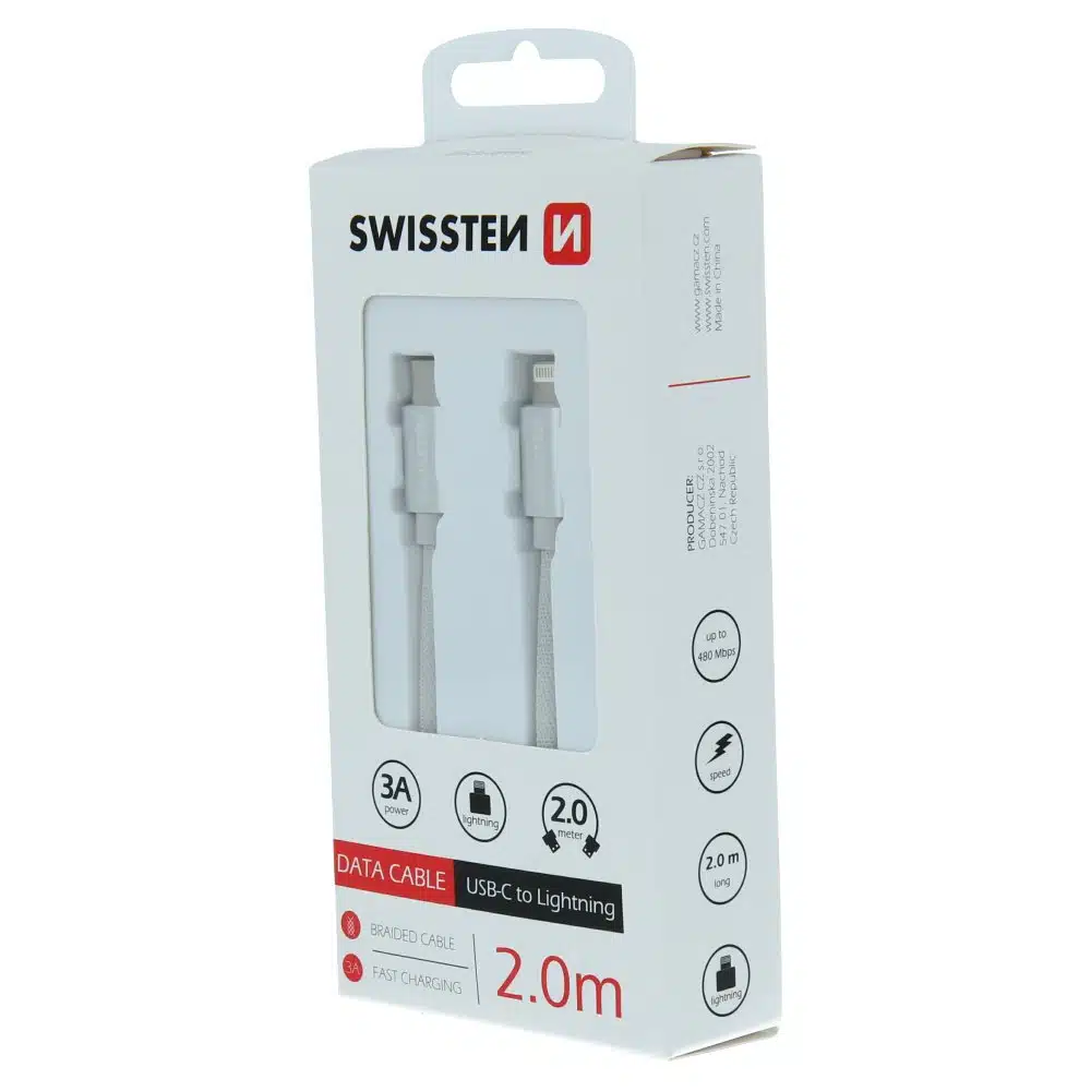 Swissten – Textile USB MFI – Lightning Cable – 2 mtr – Zilver