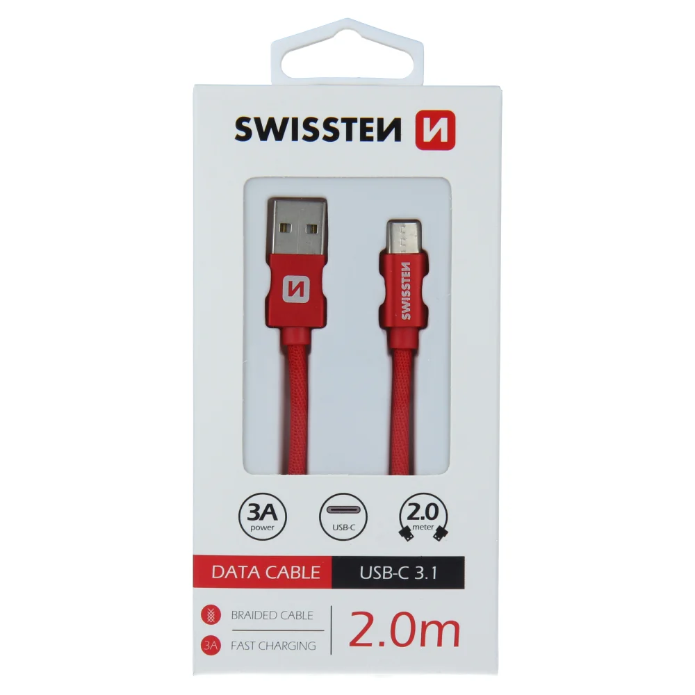 Swissten – Textile – USB to USB-C – 2 mtr – Fast Charging – Rood
