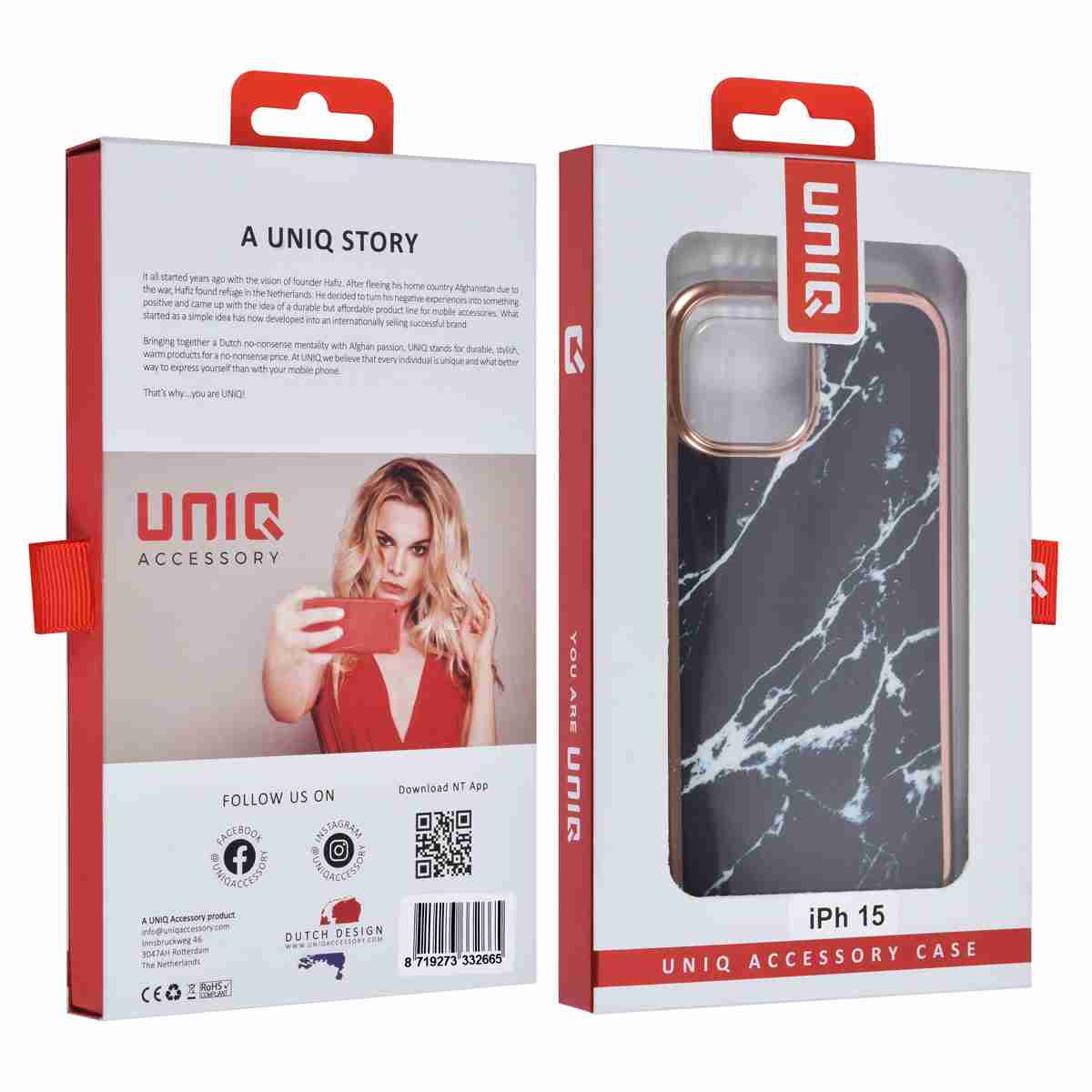 UNIQ – Backcover iPhone 15 – Marmer Zwart