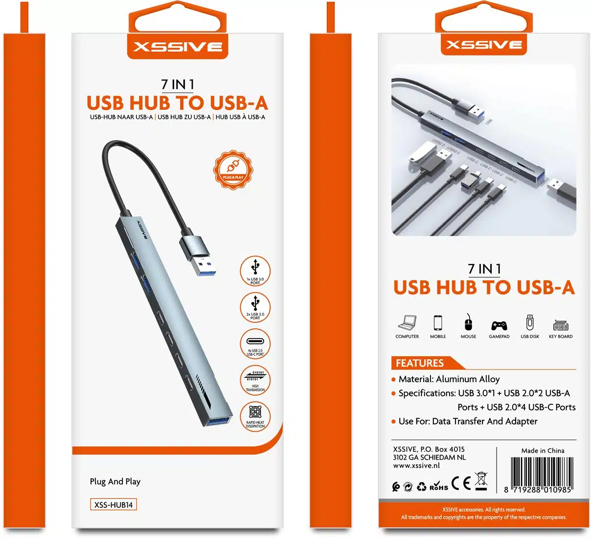 De Xssive 7-in-1 USB Hub is dé oplossing voor een tekort aan USB-poorten. Met zijn robuuste kwaliteit, veelzijdige aansluitmogelijkheden en gebruiksvriendelijkheid is deze hub een onmisbare accessoire voor elke moderne werkplek.