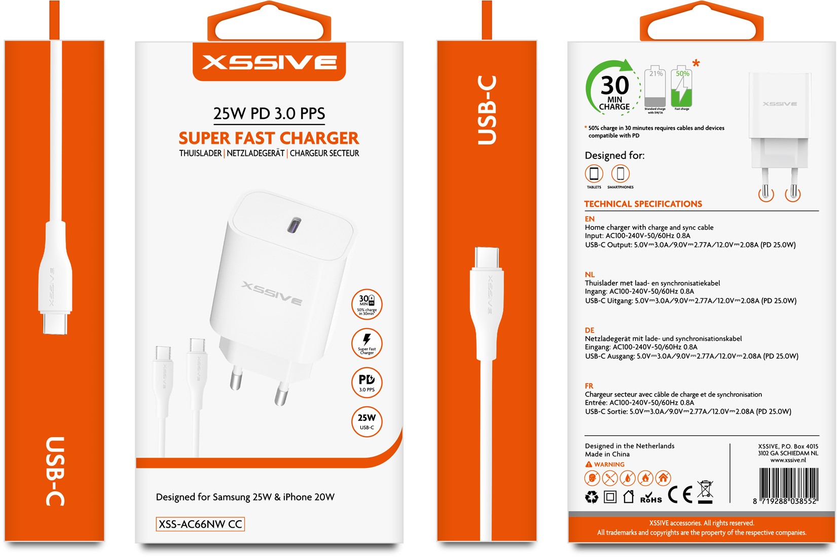 Xssive 25W PD3.0 Super Fast Charger USB C to Lightning Cable XSS-AC66NW – Wit
