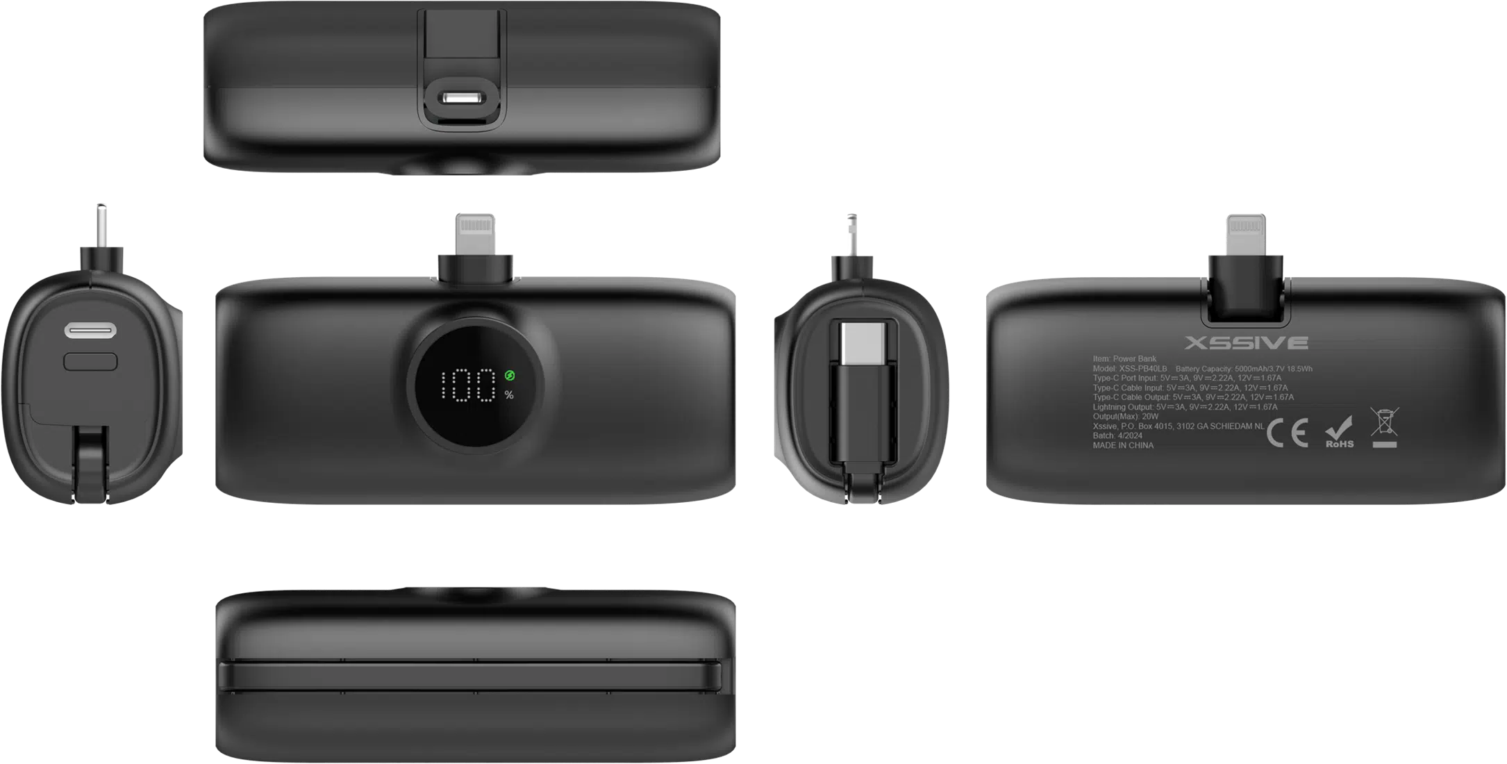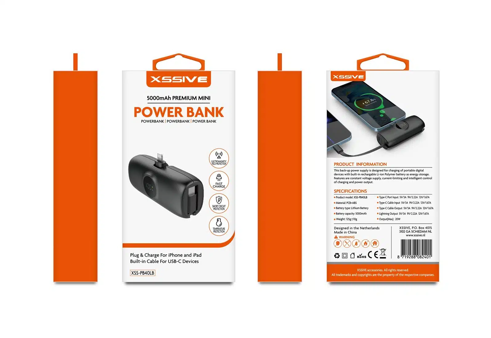 Xssive Premium Mini Powerbank For iPhone USB-C Cable 5000mAh – Zwart