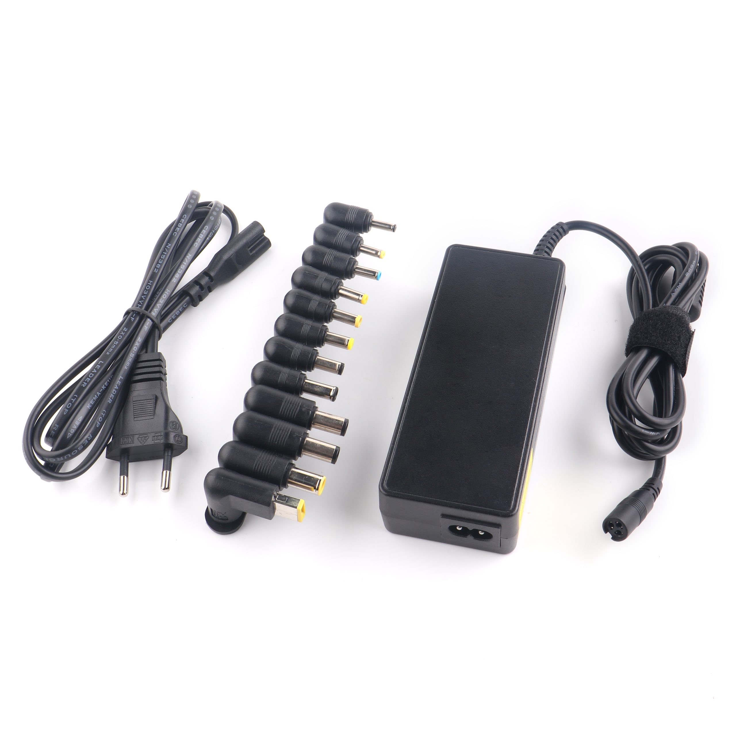 Universele Laptop-nootboek adapter. Met adapter worden er 12 stukken aansluit stukken (pluggen). Hierdoor is mogelijk dit adapter aan bijna alle latops/notbokkboek