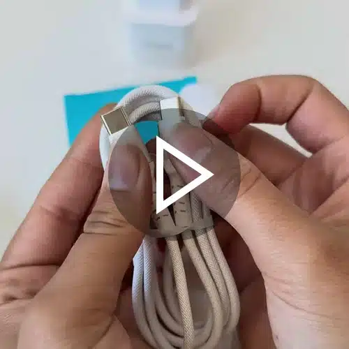 In de verpakking vind je een stevige, hoogwaardige USB-C naar USB-C-kabel. Hierdoor geniet je meteen van optimale prestaties en hoef je geen aparte kabel meer aan te schaffen. Perfect als complete oplaadset voor thuis, op kantoor of in je reisbagage.