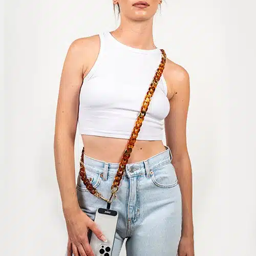 Het Zanae Ibiza telefoon draagkoord is beschikbaar in diverse uitvoeringen en kleuren, zodat je altijd een stijl vindt die bij jou past. Deze uitvoering, met het chique Café del Mar design, heeft een verstelbare lengte van 130 cm voor optimaal draagcomfort.